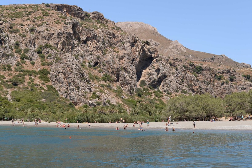 - Теперь о самом пляже. Не ходите по темному песку без обуви – обожжетесь! В реке, впадающей в море, вода холодная, поэтому даже летом тут совсем не так тепло, как на других критских пляжах. Кроме того, заходишь в виду – и ощущаешь, как по твоему телу будто мурашки бегут. А это не мурашки, это вода ледяная поднимается из подземных ключей, река-то совсем рядом. И мутная там водичка. Сам пляж небольшой, а желающих окунуться много, вот и баламутят. После прозрачных волн в других местах это как-то разочаровывает.