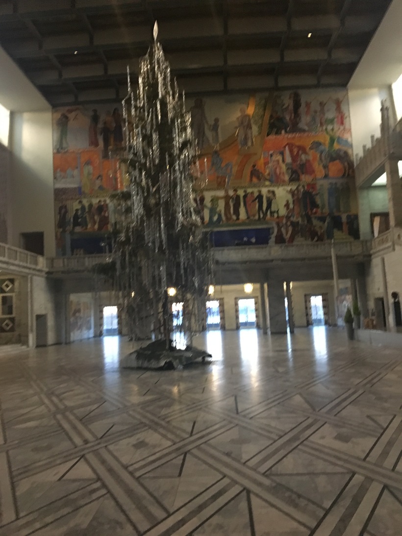 Вошли мы в Ратушу свободно, увидев, что люди просто заходят внутрь, не было никаких касс или охраны, мы тоже пошли погреться и посмотреть. Нас встретил огромный зал с елкой посредине.