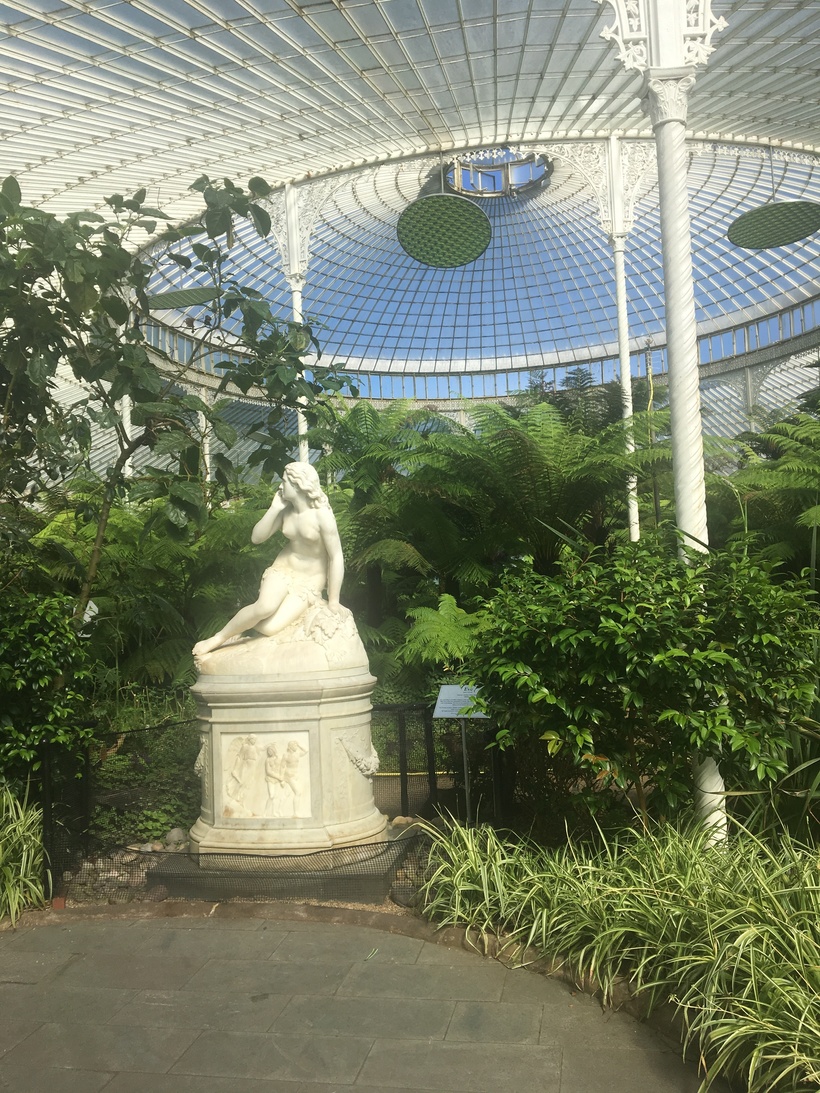 Уже насмотревшись на растения, я заметила прекрасные белые скульптуры и только потом обратила внимания на необычные плакаты вдоль стен. Оказывается этот павильон называется Дворец Киббла и построен он в 1817 году.