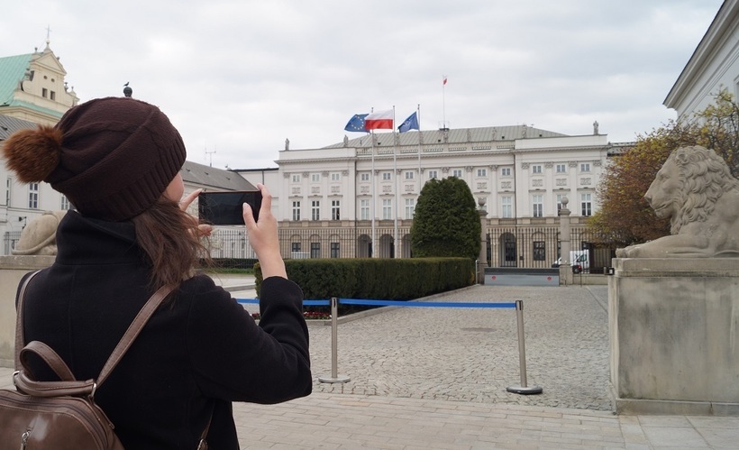 Мы приехали в Варшаву 10 апреля, совершенно позабыв о том, что для Польши этот день – день великого траура по погибшему в 2010 году в авиакатастрофе под Смоленском президенту, Леху Качиньскому. Естественно, к президентскому дворцу в этот день было не подобраться – все было огорожено полицейскими за несколько кварталов. Поэтому полюбоваться дворцом нам удалось только издалека. А на следующий день нам пришлось проложить свой маршрут так, чтобы снова через него пройти.