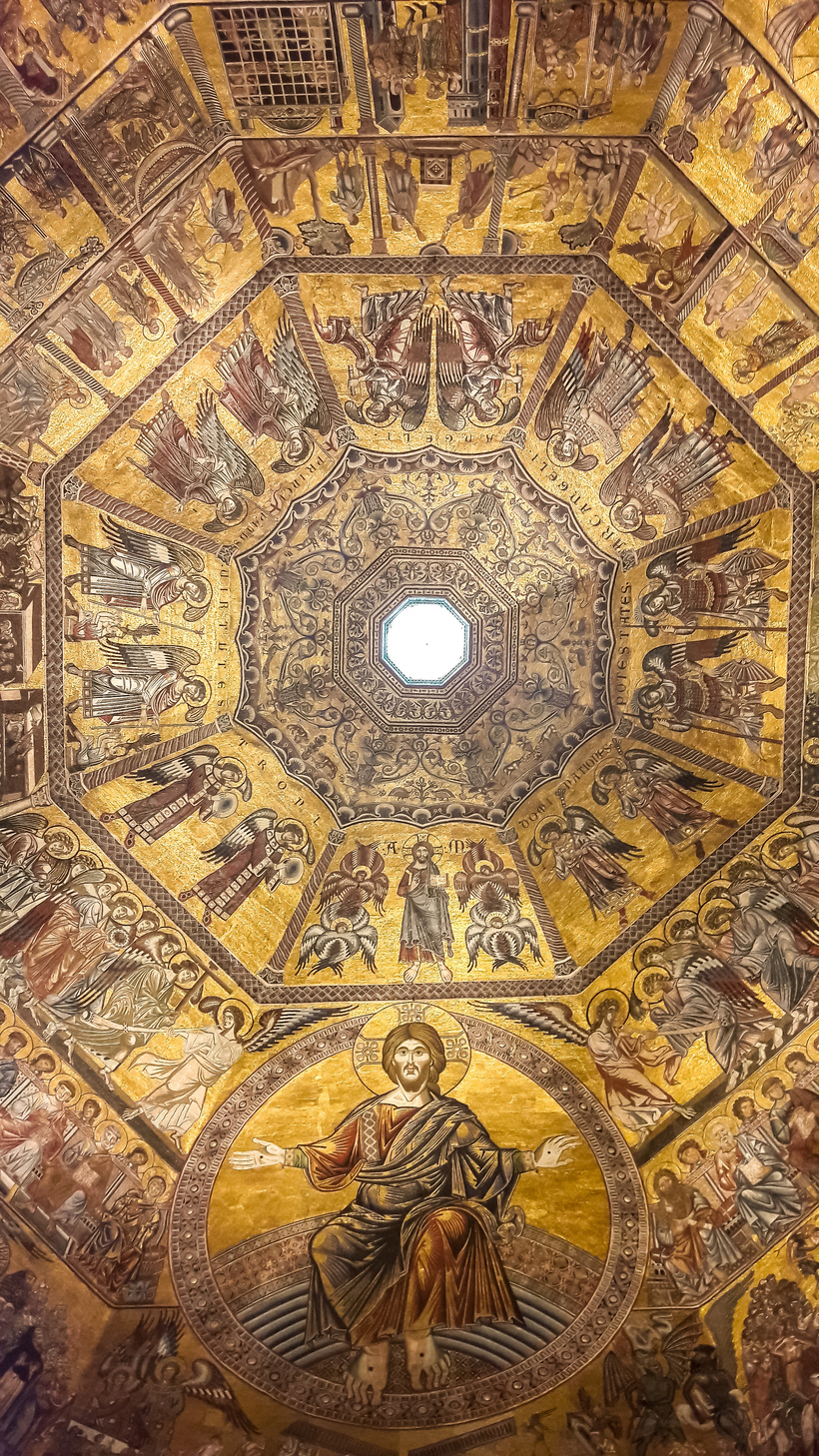 Что касается внутреннего убранства, то я не ожидала, что оно будет настолько богатым. Внутри очень много ценных фресок, хотя, мне были больше интересны мои ощущения от нахождения в столь древнем месте, стены которoго хранят настолько мощную энергию, и где вплоть до XIX века крестили всех рожденных во Флоренции.