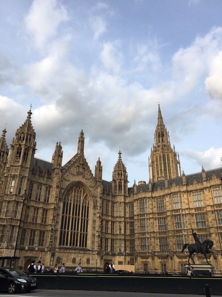 Здание очень большое. Можно даже посетить его, но мне такая мысль в голову не приходила, но все ещё впереди и когда -нибудь, выучив английский в совершенстве, я пойду послушать английских парламентариев.