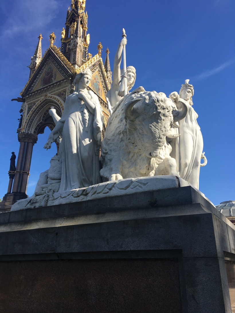 Мемориал смотрится величественно и я решила обязательно прочитать историю его создания и историю жизни принца Альберта. Почти в каждый мой визит в Лондон я гуляла в Гайд-парке и проходила мимо мемориала. Мемориал стал привычным и я уже не рассматривала его в деталях, как в первый раз. Правда теперь я хорошо знала кто такой принц Альберт и почему именно ему возведён такой огромный мемориал. Википедия великое изобретение интернета и я, начав с принца Альберта, изучила целое поколение британских аристократов.