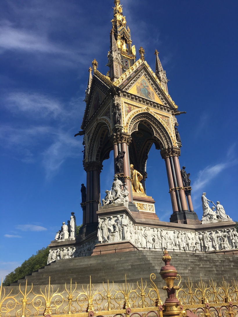 Этой весной, будучи на отдыхе в Лондоне я решила погулять по району Кенсингтон, который хотела давно посетить. Самый короткий путь к нему проходил мимо мемориала принцу Альберту. Светило яркое майское солнце и мемориал смотрелся очень ярко на фоне голубого неба. Мимо пролетал вертолёт и я невольно задумалась сколько лет мемориалу.