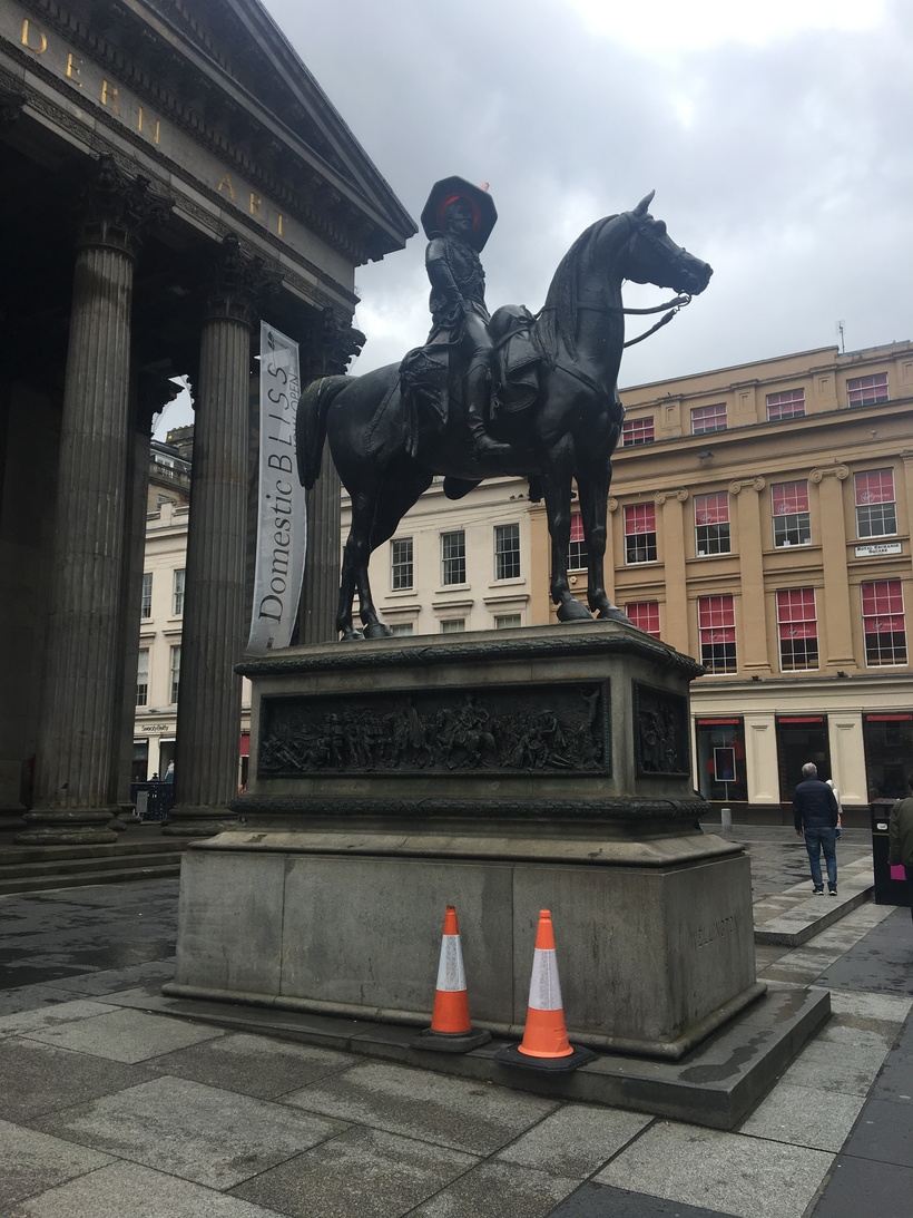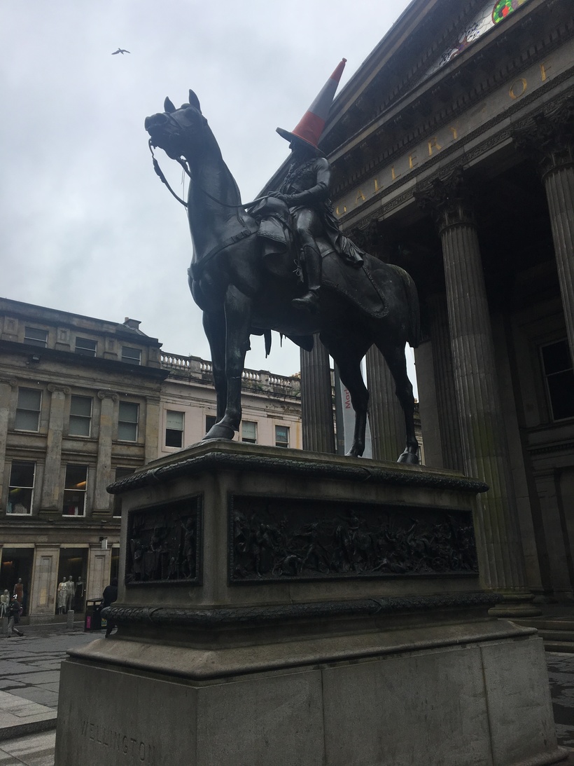 - Мне сложно до конца понять почему жители города Глазго считают, что памятник герцогу Веллингтону в «шляпе» лучше, чем без неё.