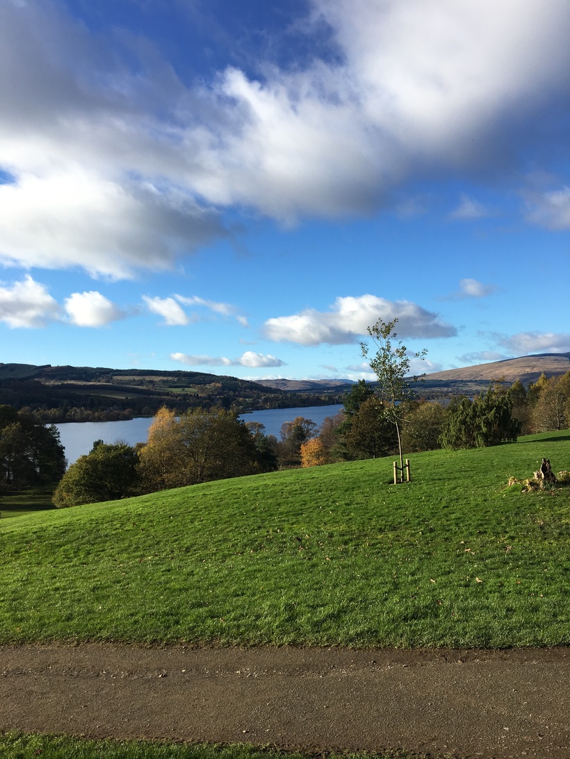 Минут через двадцать я вышла на шикарную площадку без деревьев, внизу серебрилось озеро, знаменитый Лох-Ломонд. Как же здесь было красиво, хотелось просто побежать босиком по прекрасной зеленой траве.