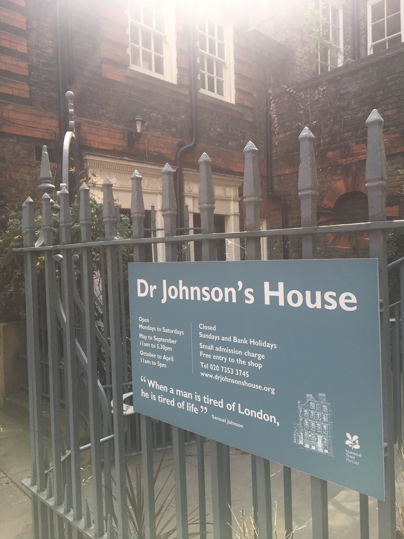 Я гуляла по лондонскому району Темпл в поисках церкви Темпл 12 века. Попутно я смотрела по картам Гугл, что интересного есть в этом районе. Дом-музей Доктора Джонсона был расположен на моем пути, нужно было только зайти в переулок с центральной улицы. Честно говоря я не могла сразу вспомнить кто это, хотя имя мне казалось смутно знакомым. Я решила зайти посмотреть, тем более что время у меня было и я надеялась что этот древний район принесёт мне несколько приятных сюрпризов.