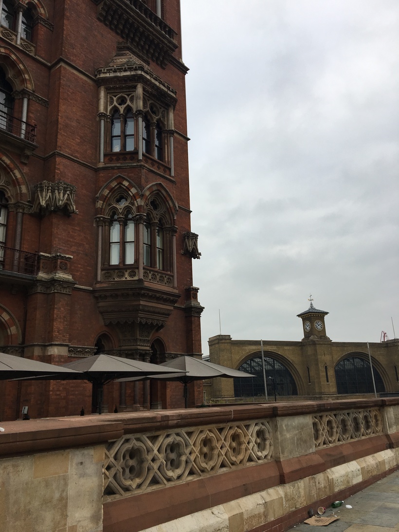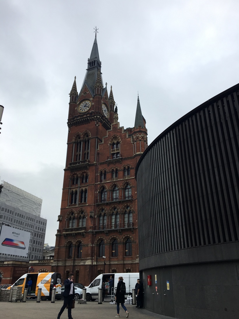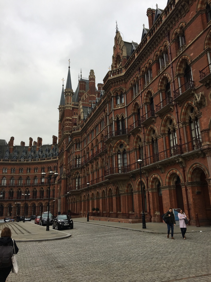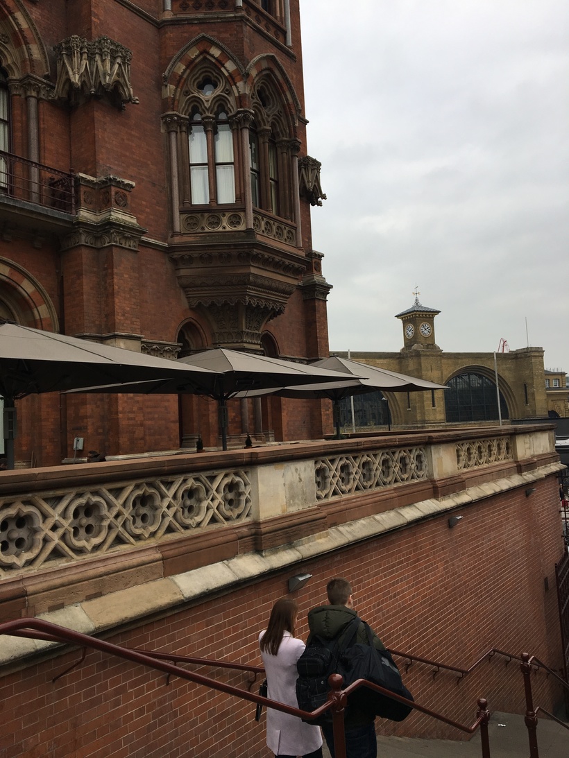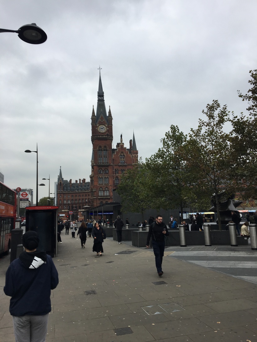 Может быть, поэтому я так хорошо познакомилась с железнодорожными вокзалами Лондона. Я ездила по красивым пригородам Лондона, посещала замки и ботанические сады. Вокзал Сент-Панкрас, расположен в центральной части Лондона, рядом с вокзалом Кингс-Кросс. Должна сказать, что в фильмах о Гарри Поттере, очень хорошо видно этот вокзал снаружи. Поэтому когда я приехала на станцию метро, которая одновременно носит название двух вокзалов и вышла на улицу, я сначала перепутала вокзалы.