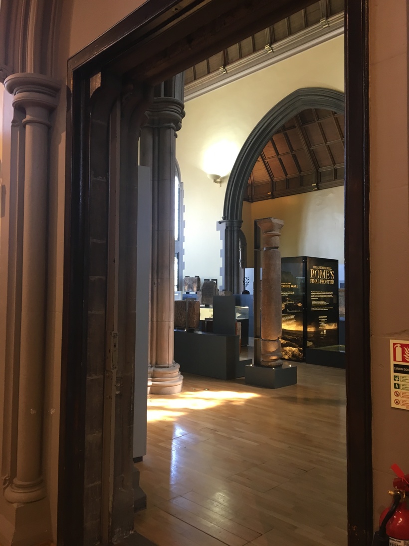 На входе была расположена информационная стойка. Прямо напротив неё, располагался небольшой зал с древними экспонатами. Я посмотрела старинные предметы раскопок, но так и не поняла, были ли они с территории Шотландии. Скорее, они мне напомнили Древний Египет.