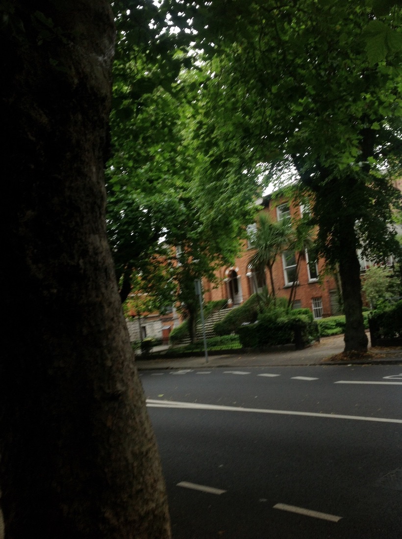 Отель находился в супер престижном районе и улицы по которой мы шли была одной из красивейших в Дублине. Но мы не подозревая об этом, и думали, что она типовая и здесь везде так люди живут. Широченная дорога в четыре полосы, на которой проезжали редкие машины, через каждые сто метров, остановка автобуса, вдоль тротуара росли вековые деревья, перекрывающие улицу, как сводом, своими кронами. И двух этажные приятные домики с садиками с двух сторон. И все это в яркой зелени всех возможных оттенков.