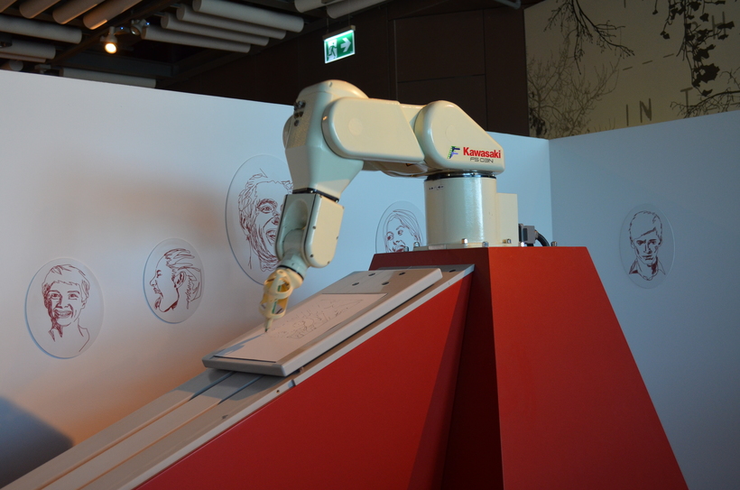 А вот, например, робот, рисующий ваш портрет. Очень интересно наблюдать, как рождается очередной шедевр