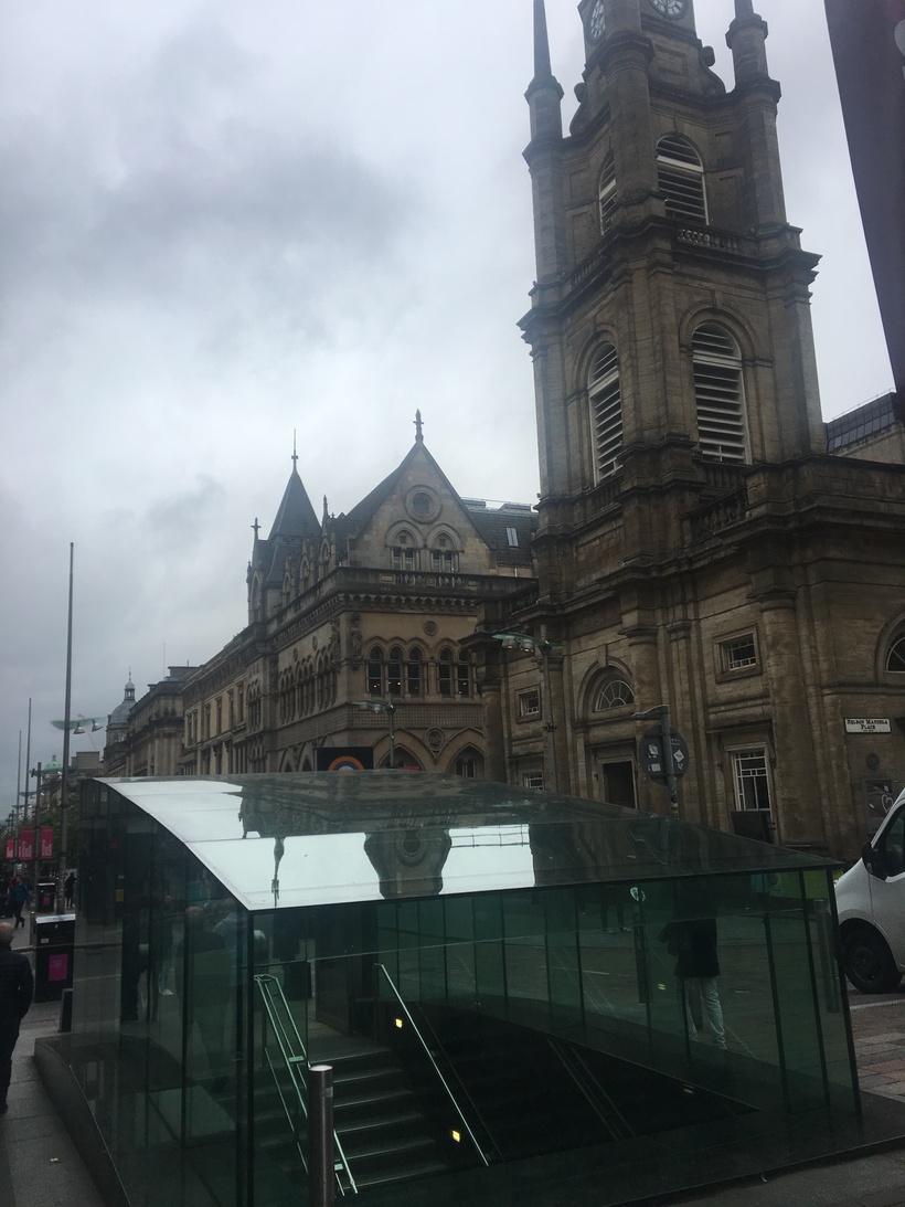 Сначала я решила, что галерея художественная, но зайдя внутрь поняла, что это огромный торговый многоуровневый центр. Центральный вокзал Глазго расположен в конце улицы Бьюкенен с противоположной стороны. Вот здесь я обнаружила массу кафе и продуктовых магазинов. Автобусы в разные части Шотландии отправляются в основном отсюда и здесь гулять достаточно тяжело и совсем не интересно.