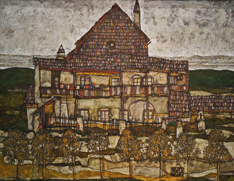Большую часть музея занимает коллекция работ Эгона Шиле, довольно известного и довольно талантливого товарища, который, по-моему, даже до тридцати лет не дожил. Вот с ним у нас явно не сложилось. То есть, картины у него очень характерные. Тот, кто увидел их хоть один раз, никогда уже не забудет этот стиль и, я думаю, вспомнит имя автора.