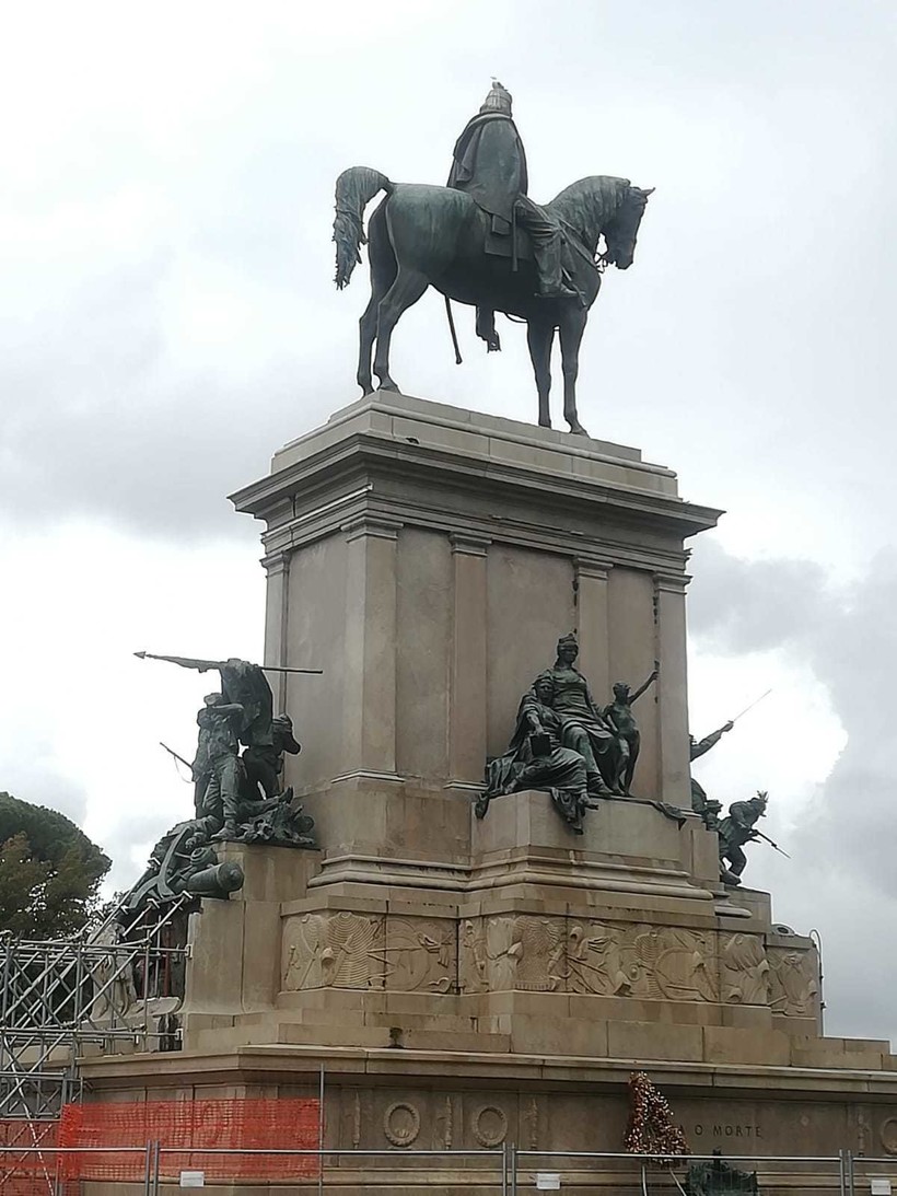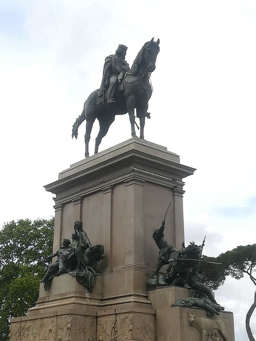 В центре нее установлен памятник Джузеппе Гарибальди – народному герою, одному из лидеров объединения Италии. Это - конная статуя на высоком постаменте, украшенном скульптурными композициями. Они изображают сцены борьбы за республику. И можно увидеть надпись, говорящую о том, какой нелегкой была эта борьба: «O Roma e morte» - «Рим или смерть».
