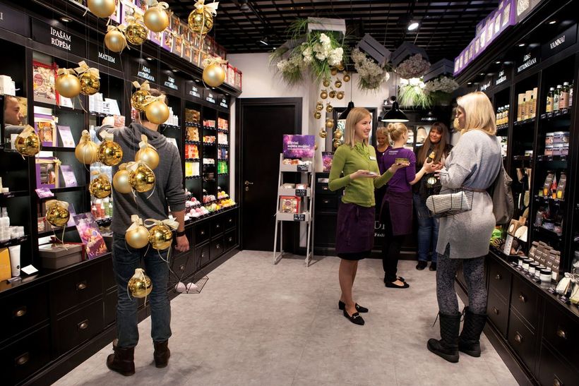 И то, и другое можно, конечно, купить и сейчас. Сапоги - в обувных, а конфеты - в магазинчике “Laima”. Кроме того, на первом этаже расположен продуктовый “Rimi”. Лайфхак: там тоже продаются сувениры! Если вы забыли купить в подарок магнитик, в любом сетевом продуктовом магазине найдется стойка с латвийскими сувенирами. Там же, на первом, есть “Drogas”, где берутся разные шампуни, зубные щетки и прочие стиральные порошки.