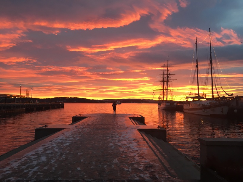 Самое большое впечатление было от фьорда на третий день, во время посещения Ратуши, был шикарный закат и вода залива переливалась всеми оттенками оранжевых цветов.