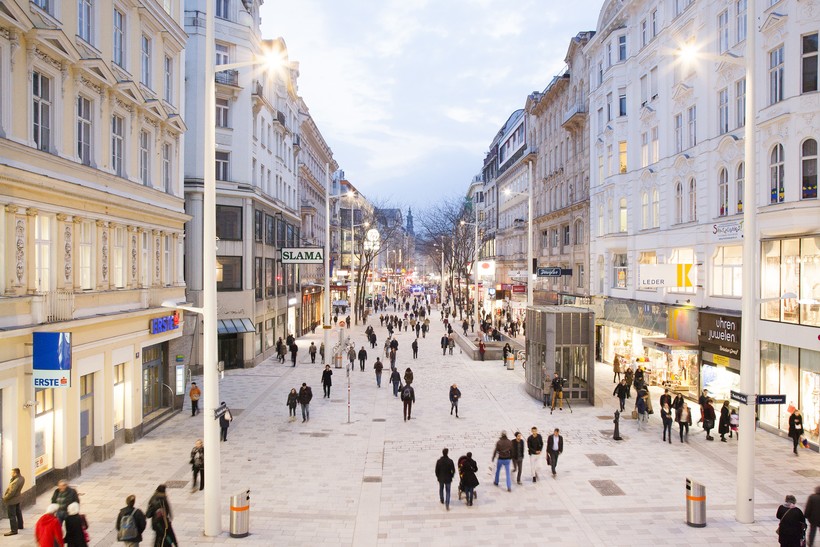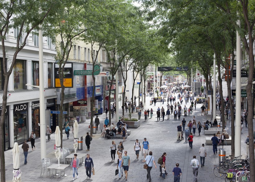 Теперь можно, не натыкаясь на автобусы, наслаждаться жизнью, особенно летом, когда ты ходишь там неторопливо. И ты можешь и зайти в любой магазин, и остановиться поесть на улице или в любом из ресторанчиков, там расположенных. Словом, всё для людей (Вена вообще – город для людей и даже был признан самым комфортным городом мира).