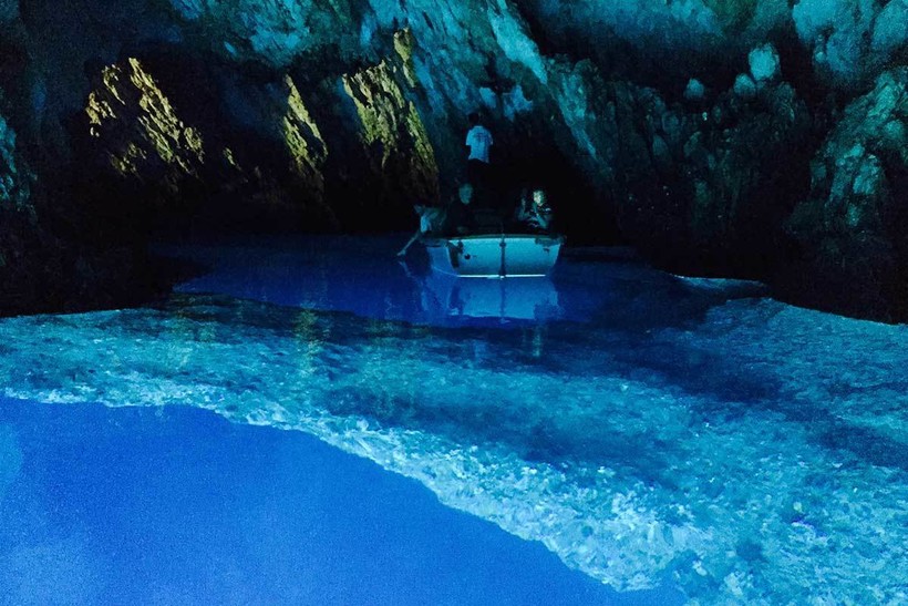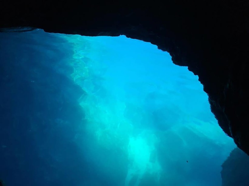 Этот вопрос я задала своему гиду ( не подумайте обо мне хорошо, я не выучила до сих пор ни одного языка, пользовалась, по обыкновению, электронным переводчиком). Он пояснил, что в стене грота есть отверстие, при помощи которого внутрь пещеры попадает солнечный свет. И когда грот наполняется водой, то свет проходит через толщу воды, и грот расцвечивается невероятной глубины и красоты голубым цветом.
