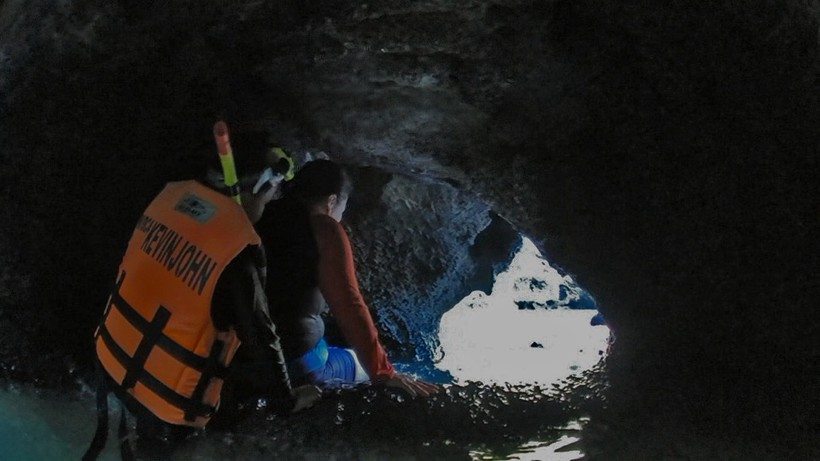 Проход в лагуну осуществляется через небольшое круглое отверстие в скале – не очень удобно. Можно легко пораниться о камни, особенно если есть волны, даже небольшие. Так что спешить не стоит, лучше заходить внутрь медленно и аккуратно.