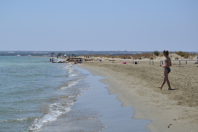 Дорога продолжала струиться между камышами, пока наконец перед моим взором не оказалось долгожданное море. Я заехала на импровизированную парковку. Помимо моей там оказалось еще несколько машин. Я вышла на улицу чтобы оглядеться. Прямо перед парковкой начинался дикий пляж. Береговая линия показалась мне не очень широкой и я, сделав несколько шагов, подошла к воде, чтобы понять, достаточно ли там тепло для купания. Вода оказалась не холодной, но не такой теплой как, например, на Governors beach. Вход в воду оказался песчаным. Я посмотрела направо и увидела, что пляж тянется довольно далеко. Вдали виднелись лежаки, что означало наличие очага цивилизации в виде какой-нибудь кафешки или ресторана. На лежаках были люди, а значит, подумала я, пляж пользуется популярностью у отдыхающих.