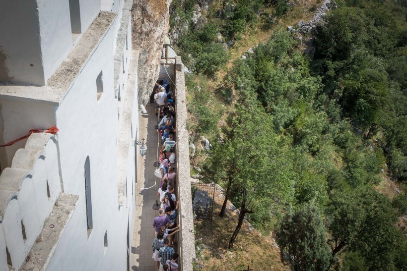 Нам не очень повезло, потому что мы попали в какой-то местный религиозный праздник и здесь много туристов и паломников собралось. В самом остроге было просто не протолкнуться. Но, видимо наши сербы здесь частые гости и они по своим каким-то каналам провели нас к нужным мощам и иконам в обход основной толпы.