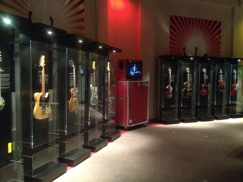 Когда проходили из зала в зал, на стенах видели гитары, корпуса которых сделаны из моделей машин этой марки, наверное они стоят невероятных денег!