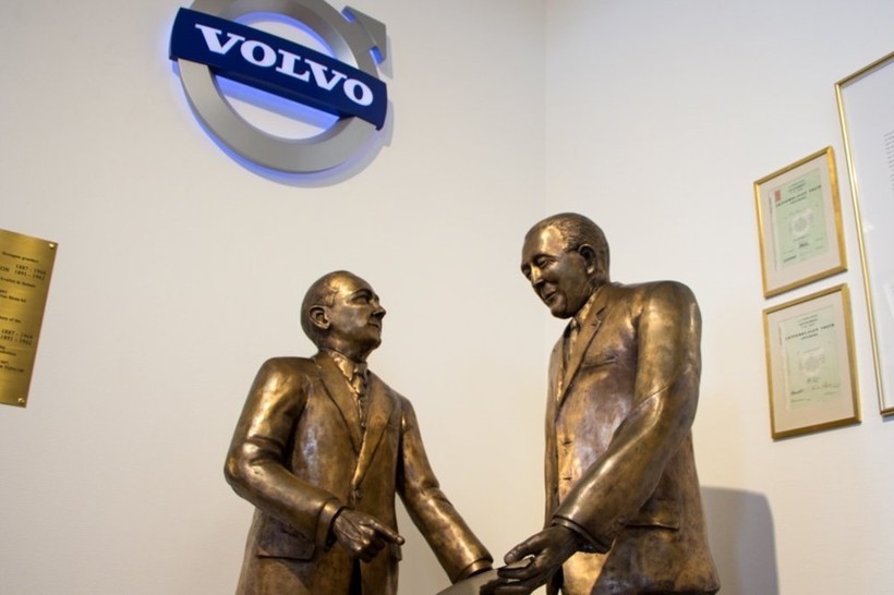 Конечно же, скульптуры основателей Густав Ларсон и Ассару Габриэльссон, а рядом под охраной первый подшипник, с которого они начали свою деятельность и первый контракт. Видимо, чтобы такую историю никто не украл.