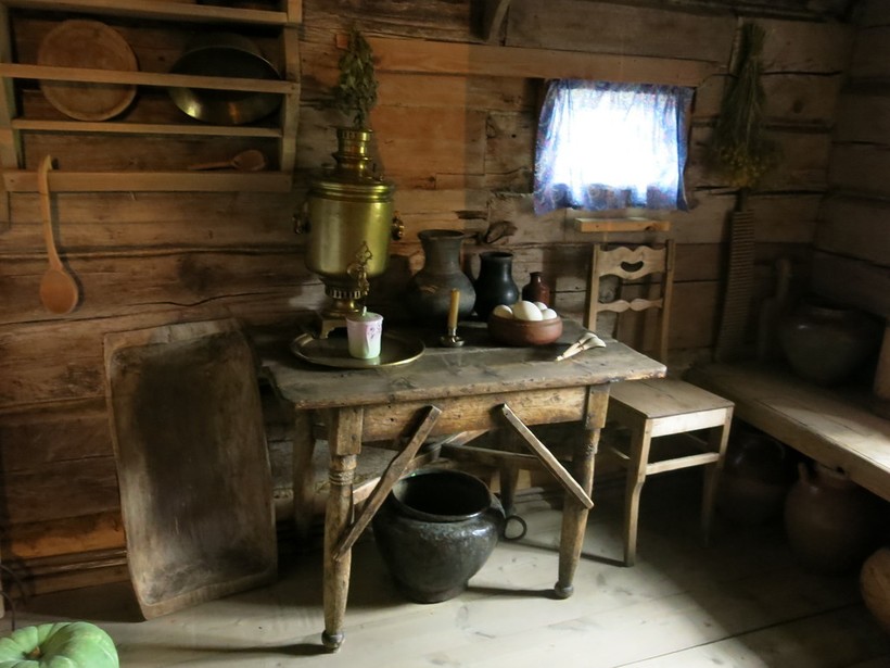 В каждом крестьянском доме представлена тематическая выставка по мотивам быта крестьян, живущих в 18-19 веках. Кстати, здесь представлены дома крестьян разного уровня благосостояния, очень интересно было рассматривать предметы, которые присутствуют в домах бедного крестьянина, крепкого середняка, также есть добротный купеческий особнячок.