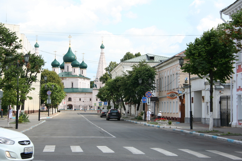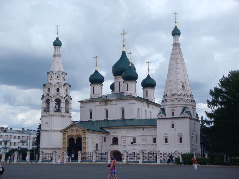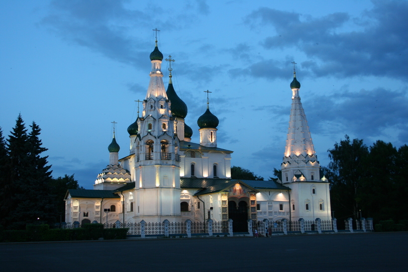 Поскольку эта церковь весьма удачно расположена, я ее всем, кто едет в Ярославль, очень советую: больших трудов не составит зайти к ней вечером и посмотреть, как эти украшения в виде кокошников смотрятся с подсветкой.