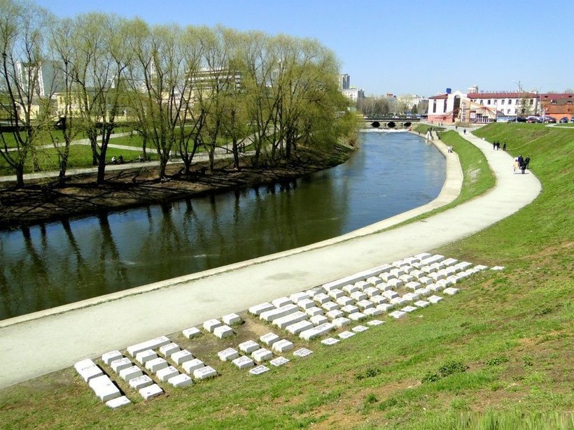Памятник все желающие на него посмотреть могут обнаружить на набережной реки Исеть, со стороны улицы Горького, если уточнить адрес, то вот он - Екатеринбург, ул. Горького, 14-а.