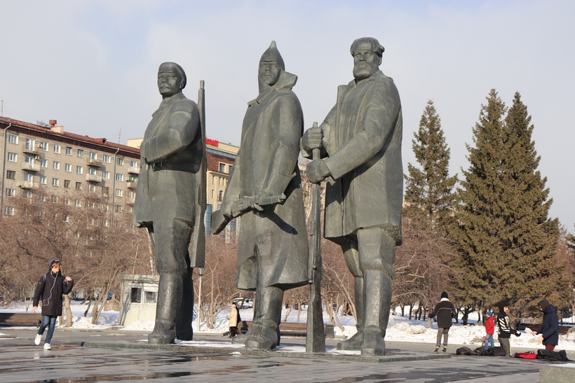 Новосибирск – город масштабный. Об этом говорит все, начиная от широких автомобильных дорог и заканчивая современными жилыми комплексами. Такой же масштабной кажется и площадь Ленина. При этом, речь идет не о квадратных метрах (допускаю, что по этому показателю площадь не самая большая в стране), а о невероятных размерах памятников. Главный из них, конечно, установлен здесь в честь Ленина. Рядом находятся еще две скульптурные композиции внушительных размеров. Одну из них представляют собой три фигуры: рабочий, солдат и крестьянин, которые символизируют собой революционное движение. Другая скульптурная композиция состоит из фигур юноши с факелом и девушки с колосьями.