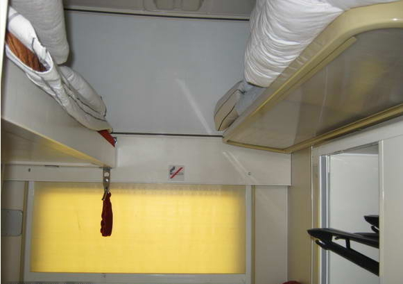 На эти рейсы можно купить билеты 1ого и 2ого класса. 1ый, естественно, удобнее, так как эти купе рассчитаны на двоих и на полках можно не только лежать, но и сидеть. У нас было купе 2ого класса, в котором путешествовало три человека, и на полках можно было только лежать. В купе также есть откидное сидение, стол-умывальник, розетка (этот пункт особенно порадовал). Единственным реальным минусом было то, что проходы в этих вагонах очень узкие и постоять там, как в наших вагонах было совершенно невозможно.