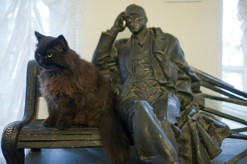 Здесь можно увидеть рукописи, черновики, вполне живого черного кота, вальяжно расхаживающего по квартире. Кстати, к его присутствию надо подготовиться, я не знала о его наличии и чуть в обморок не грохнулась.