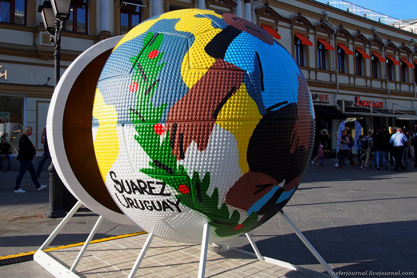 Возле главного входа в ЦУМ нередко устраиваются интересные уличные инсталляции. Это может быть приурочено к какому-то российскому празднику, текущему событию в Москве или чему-то, связанному конкретно с ЦУМом. Например, во время Чемпионата мира по футболу летом 2018 года здесь стояли огромные разноцветные футбольные мячи. Внутри мячей за стеклом находились ценные вещи – форма футболистов, мячи и прочее.