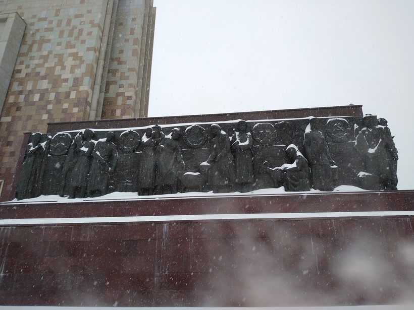 Боковые стены украшены барельефами с изображением людей разных национальностей и символов союзных республик.