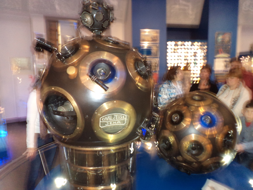 Музей Урании. Купленная мной программа была разделена на две части: сорокаминутной экскурсии в Музее Урании; и просмотру фильма в «Большом купольном зале». Сам музей состоит из двух этажей. На первом этаже выставлены проекторы звёздного неба,