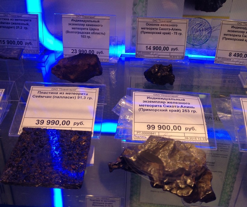 Сувенирная лавка. На выходе из планетария, я зашла в сувенирную лавку. Ассортимент изобилует редкими товарами, которые вряд ли можно встретить в любом другом месте. Например, здесь можно купить космическое тело - метеорит, но всё по тем же космическим ценам.