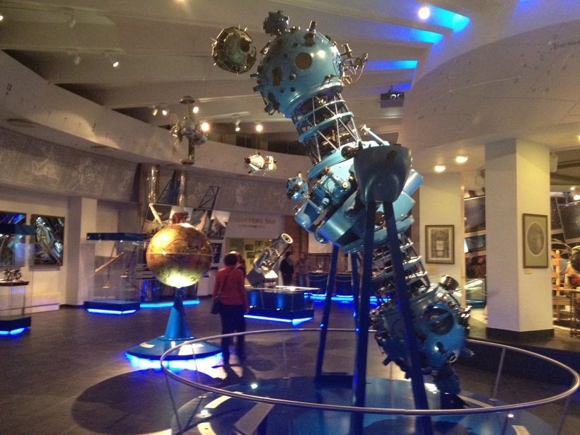 модели спутников и космической станции, и другие большие железные штуки.