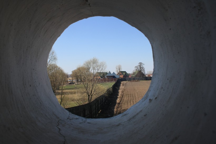 С одной стороны, от проезжей с трудом (весной глиняную дорогу развезло) улицы монастырь отделяет высоченная кирпичная стена со смотровыми окошками, толщиной около метра, со смотровыми башнями, с другой - обычный деревянный забор)))
