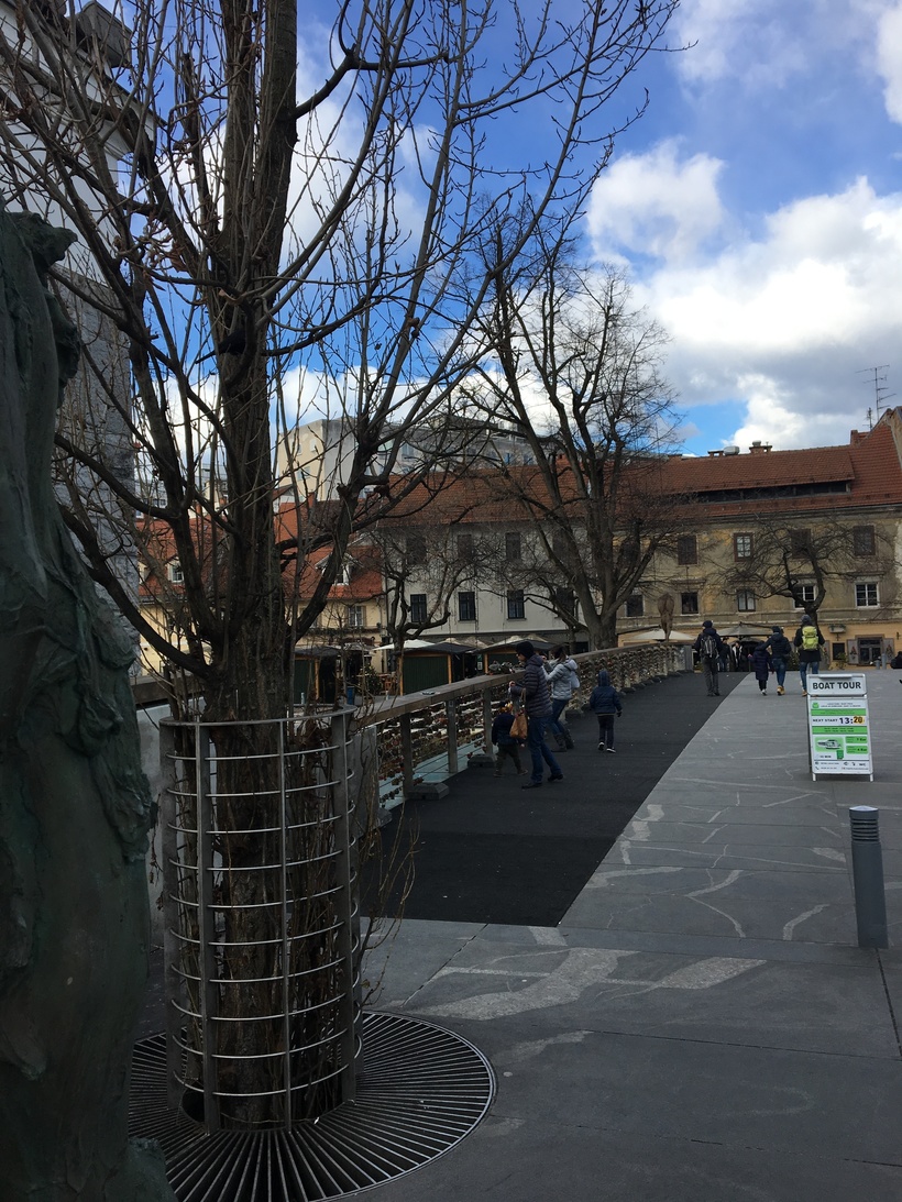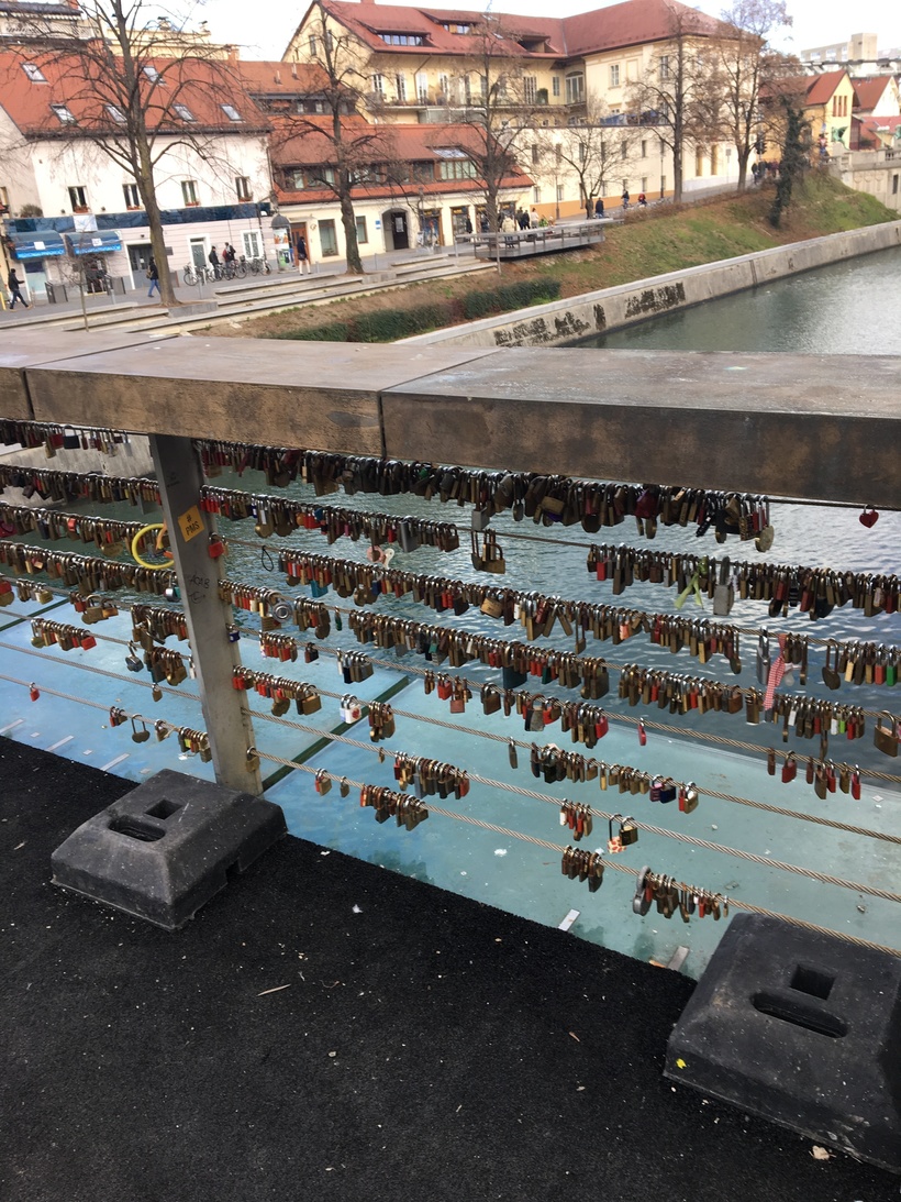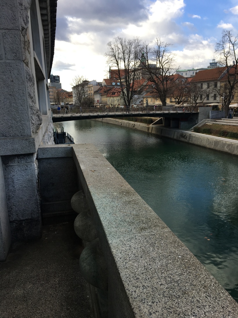 Тройной мост, самый яркий мост, который на мой взгляд есть в Любляне, привлёк моё внимание почти сразу. Стоя на нем и любуясь городом, я заметила совсем недалеко, ещё один интересный мост. Это был мост Мясников.