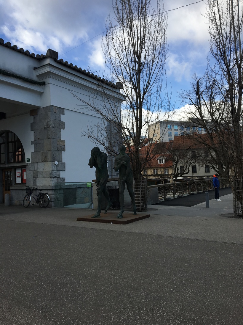 Странное название, даже грубоватое, для моста. Я пошла посмотреть на мост поближе, размышляя о происхождении названия. Путь к мосту лежал через рынок и я решила, что по мосту мясники в давние времена, доставляли мясо на рынок. Но, увы я ошиблась. Мост Мясников самый молодой в Любляне, ему нет и десяти лет. А название своё он получил, потому что на этом месте мыли мясо мясники с рынка. Кому пришла в голову такая фантазия, назвать современный мост так, непонятно. Мост смотрится со стороны совсем не большим. Однако, когда я подошла к нему ближе, я увидела , что он очень широкий. Мост пешеходный, на нем расположены несколько лавочек. На мосту было довольно много народу. Видно, что люди просто здесь гуляли и отдыхали, никто на спешил по своим делам. Мост выходит одной стороной к городскому рынку в старом городе, а другой в торговые улицы более современного города. Он пешеходный и явно предназначен для прогулок и походов за покупками.