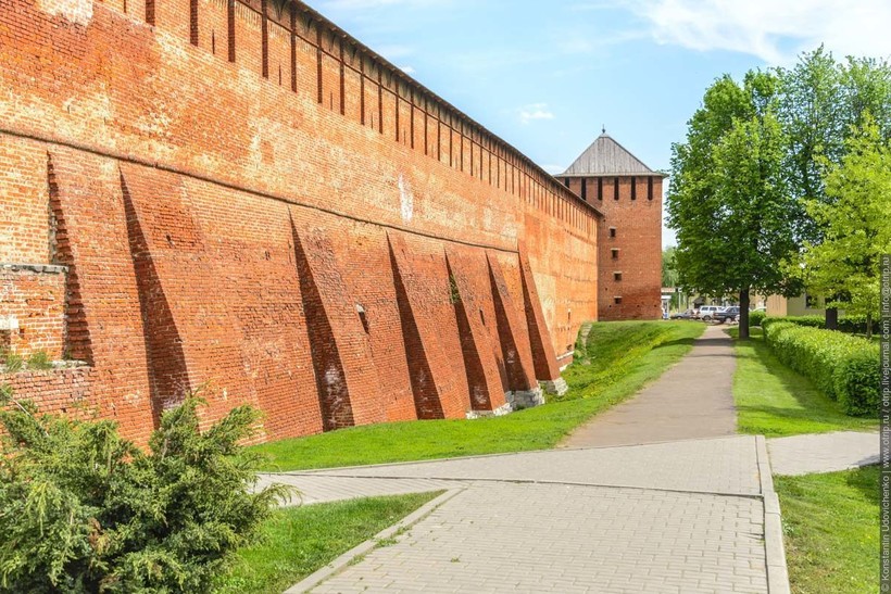 Сама стена Кремля - из красного кирпича, остроконечные башни с бойницами - все как положено. Мне кажется, что этот кусок Кремля - лишь малая часть того, что было когда-то, по сути ведь Кремль - это стена, ограждающая все, что внутри него, от врагов, именно за стенами Кремля спасались люди от нападений. Конечно, хотелось бы увидеть все целиком. но время беспощадно, поэтому осталось только довериться игре воображения и достроить все в собственной голове.