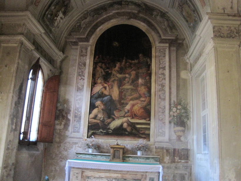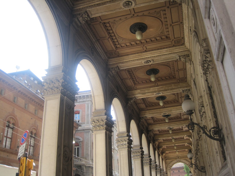 Как мне нравятся эти галереи в Болоньи. В самую жару они создают приятную тень, а в дождь можно гулять по всему городу без зонта, переходя из галереи в галерею. Я решила ненадолго зайти в храм. Удивительно, но внутри храм оказался гораздо более богато украшен, чем снаружи. Шикарные фрески на куполах храма выглядели очень древними, позже я прочитала, что они кисти великих итальянских мастеров четырнадцатого века.