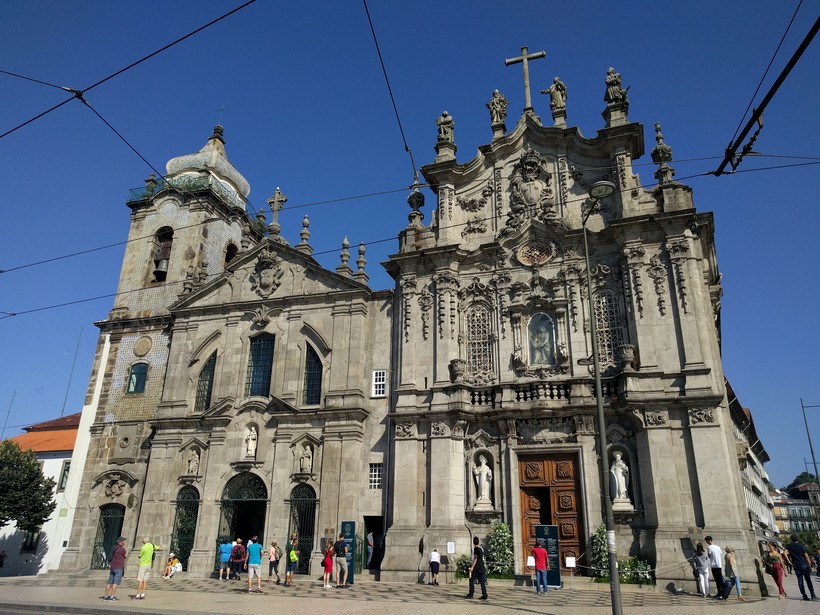Igreja do Carmo находится в самом «сердце» Порту: на остановке автобусов и трамваев «rua Carmo», напротив университета и справа от rua Carmelitas. Ее сложно не заметить. Конструкция очень запоминающаяся. На входе – образы святых в нишах, а одна из стен церкви полностью состоит из азулежу (на плитках изображены сцены об ордене кармелитов, что мне тоже было интересно изучить).