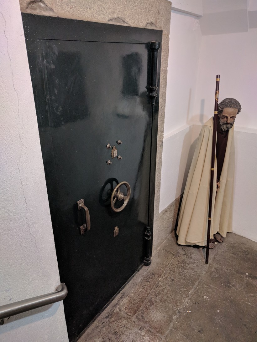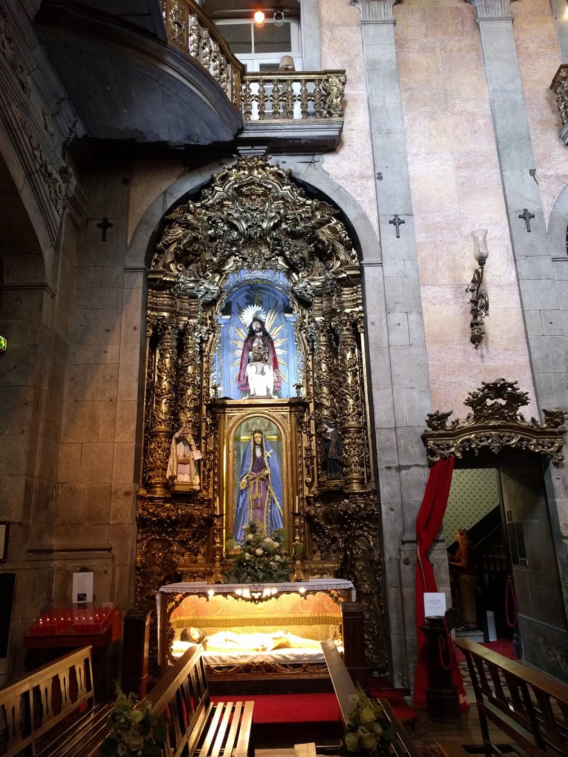 Удивило и другое: на моей памяти это чуть ли не единственная португальская церковь, за вход в которую пришлось заплатить. На входе стоит сотрудник, который всех провожает к кассе. Билет стоит 2,50 евро. Вместе с чеком выдают информационный листок с исторической справкой и планом церкви. В стоимость входит посещение не только непосредственно самой церкви, но и осмотр монашеских келий на верхних этажах.