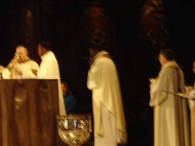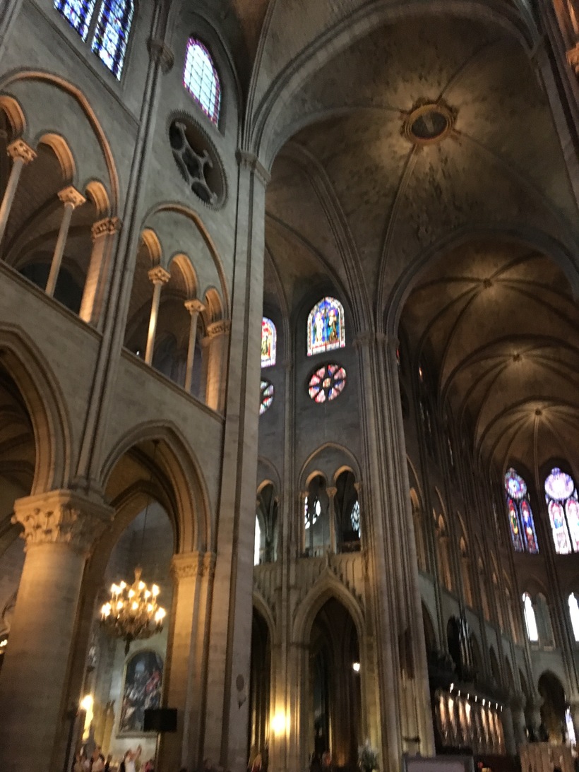 Светлый праздник придал определенную ауру моему посещению, и я с восторгом зашла в Нотр-Дам. Внутри храма священники причащали прихожан, посетителей было очень много, но атмосфера была прекрасная и светлая.