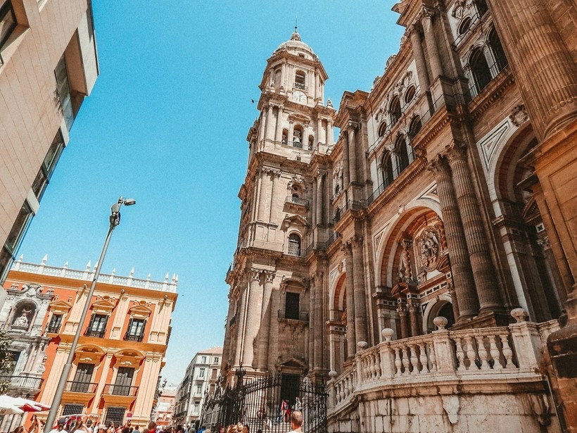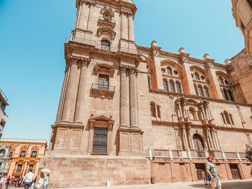 Первым делом, прилетев в Малагу с утра, я отправилась на пляж. Путь мой пролегал мимо Кафедрального собора Воплощения. Не заметить это грандиозное сооружение просто невозможно: во-первых, потому, что оно находится в самом сердце города, на Калле Молина Лариос. Во-вторых, с какой бы точки и с какого места вы ни любовались Малагой, непременно увидите устремлённую ввысь башню собора.