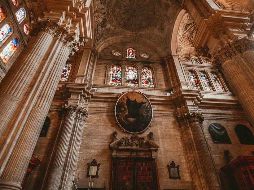 Долгое время Иберийский полуостров был захвачен маврами, и только в конце 15 века испанцы отвоевали свою страну. В Андалусии, некогда оплоте арабского халифата, до сих пор сохранились некоторые архитектурные памятники тех времён, превратившись в известные достопримечательности. Но вот Кафедральный собор был отстроен на месте разрушенной исламской мечети, от которой сохранился только апельсиновый дворик. Люди, разбирающиеся в искусстве, говорят, что Ла Манкита сочетает в себе самые разные стили (барокко, готика, неоклассика) из-за того, что строительство затянулось и архитекторы неоднократно менялись. Ну а остальные, вроде меня, просто молча им восхищаются.