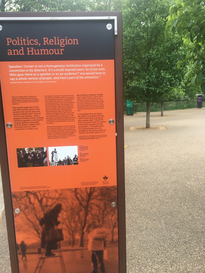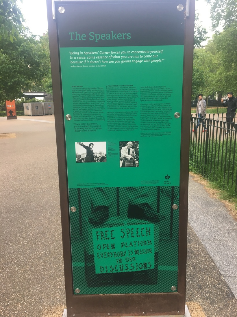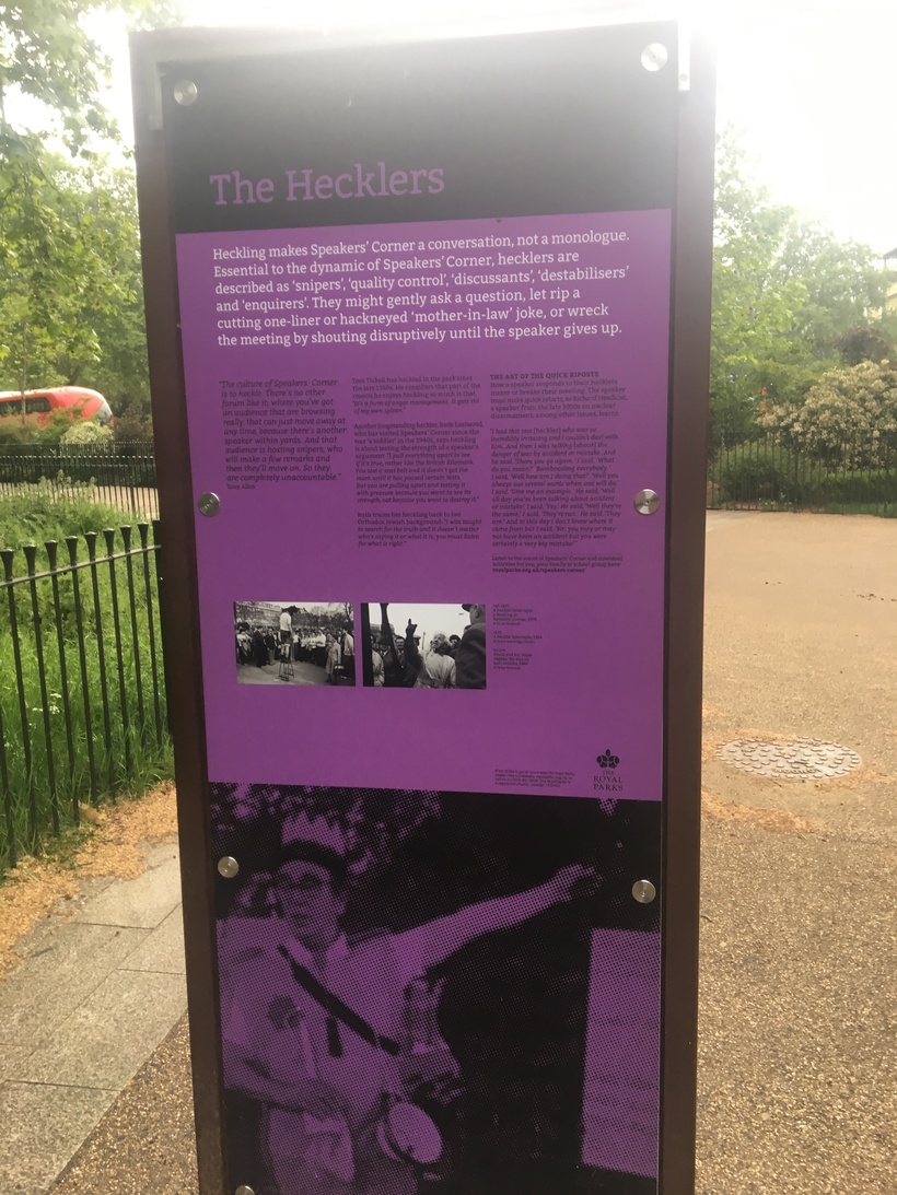 - Если вы гуляете по Гайд-парку в любой другой день недели, как было со мной, можно просто пройти медного по площадке и посмотреть плакаты прошлых, в основном исторических выступлений.