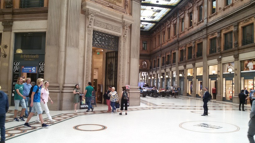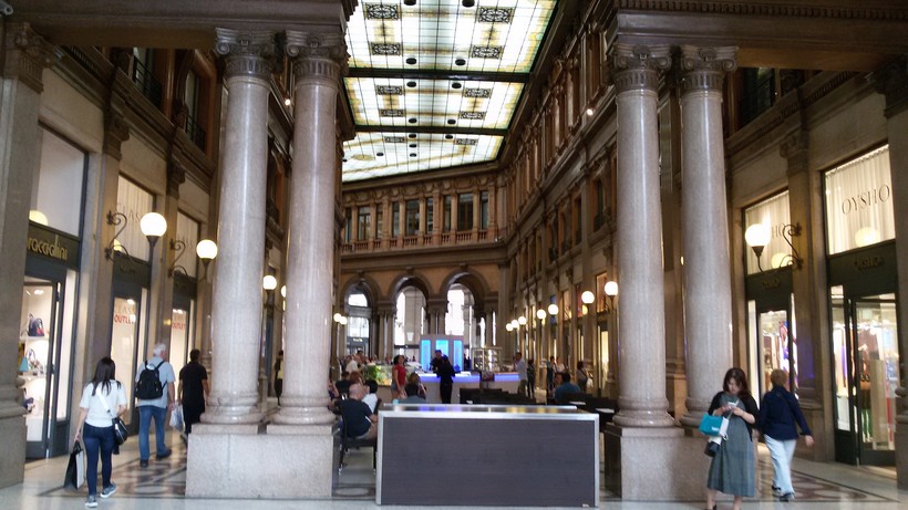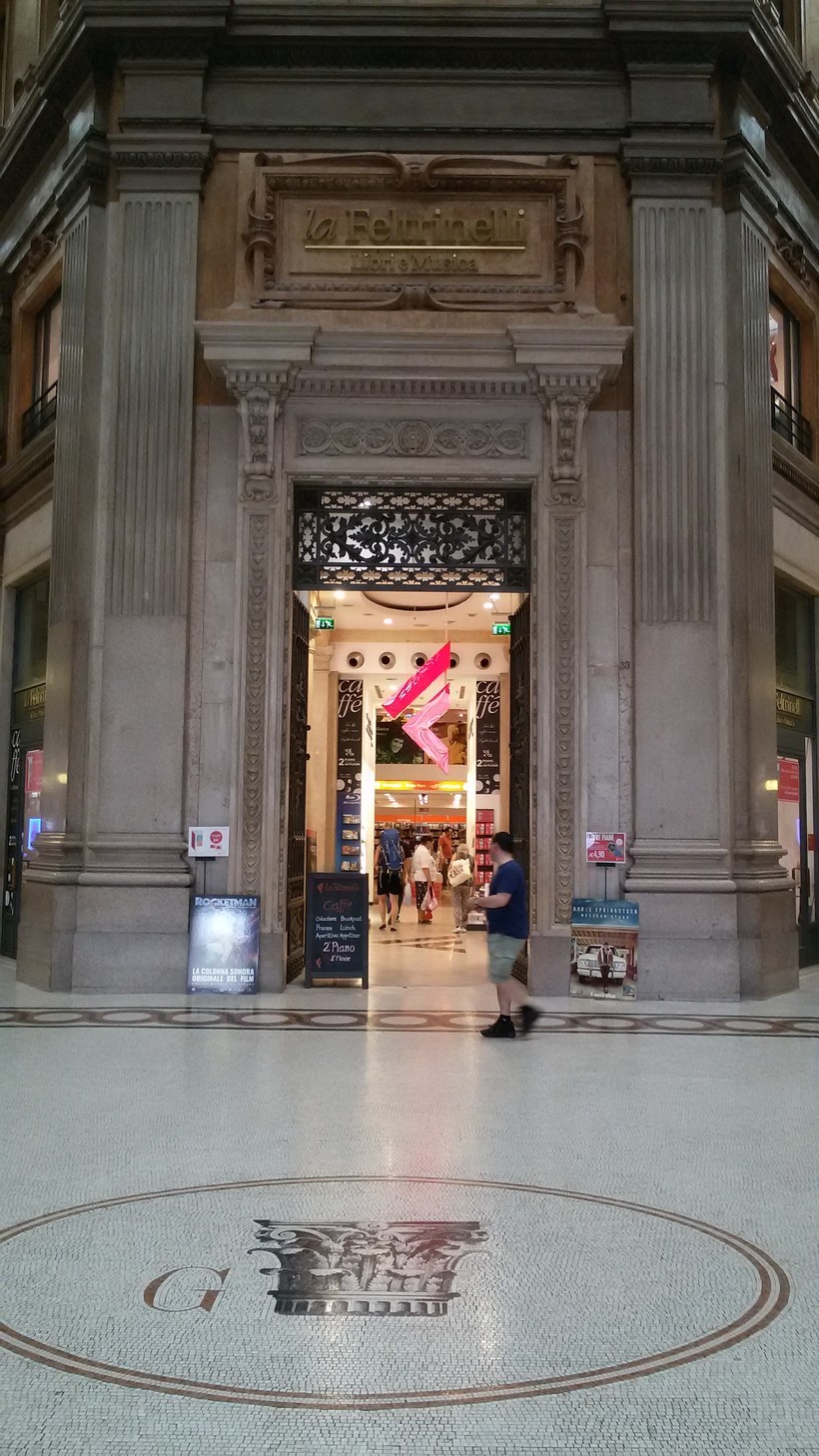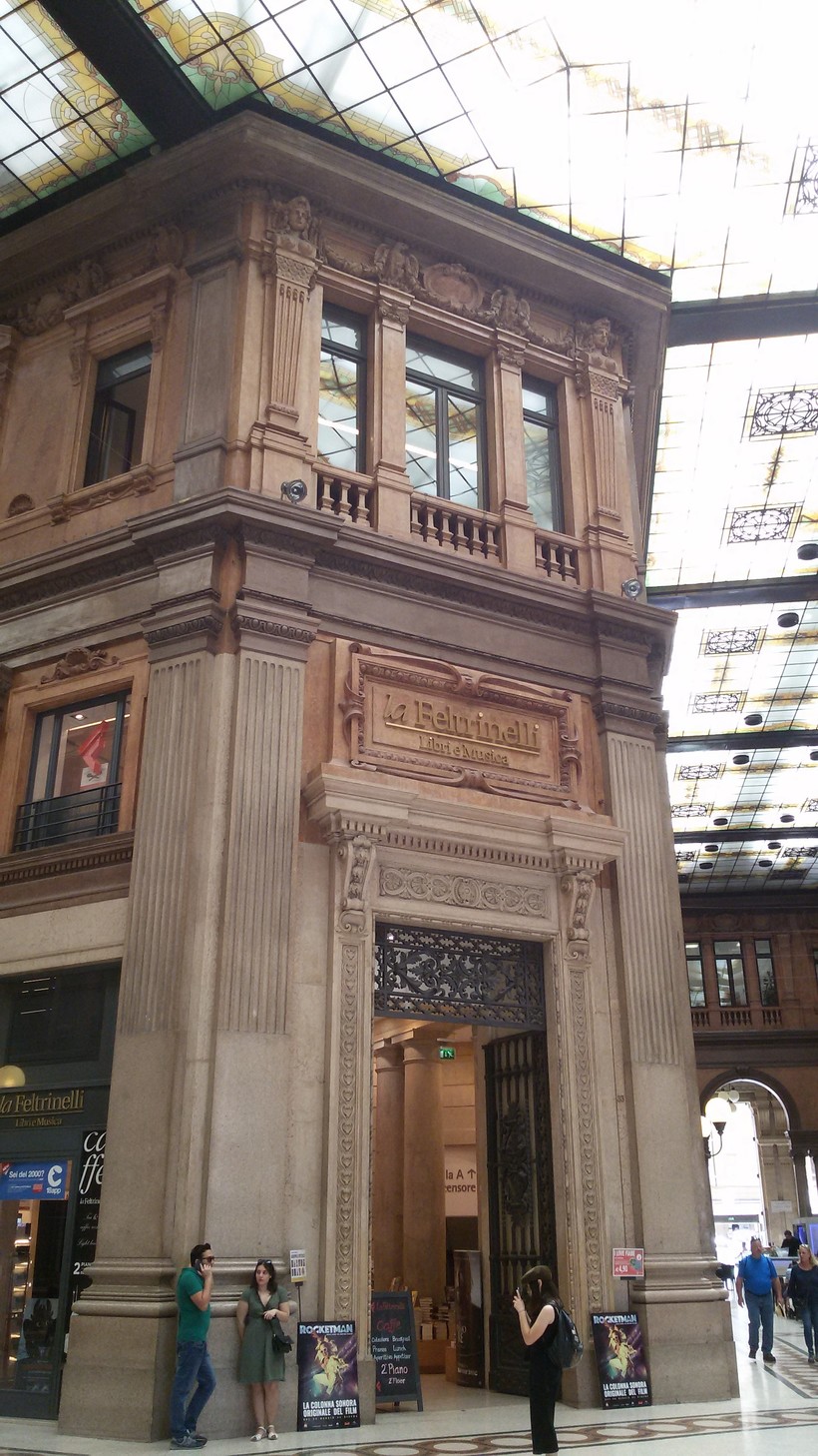 Также в галерее расположен книжный магазин популярной в Италии сети La Feltrinelli. В нем можно найти яркие иллюстрированные книги о достопримечательностях Рима, о великих итальянских художниках и зодчих, интересные издания с кулинарными рецептами и яркими фото блюд итальянской кухни, музыкальные диски. На втором этаже книжного магазина работает кафетерий. Обратите внимание, какой красивый вход в этот магазин - с колонами, лепниной, коваными дверями!
